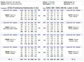 So trafen sich am Samstag den 11.4.2026 um 11 Uhr unsere 3.Mannschaft und die Mannschaft DKC 88/SKC89 St. Leon.