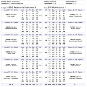 Nach 5 Wochen Pause konnte die 3. Mannschaft der ESG Frankonia endlich mal wieder ihr Können unter Beweis stellen. Es war ein Heimspiel und es kam die Mannschaft SC Pforzheim. Alles fieberte dem Spiel entgegen, denn eine Revanche war fällig.