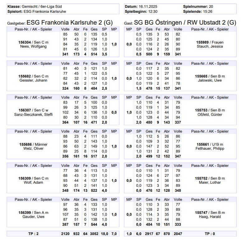 • Spielergebnisse 2025/2026