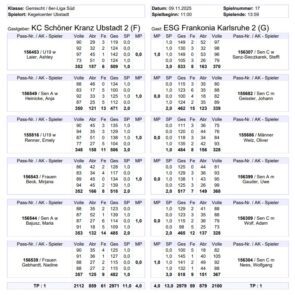 4:2 MP für den Gegner aus Ubstadt – über die Gesamtholzzahl haben wir noch eine Punkteteilung erreicht. Das brauchte man nicht so oft.